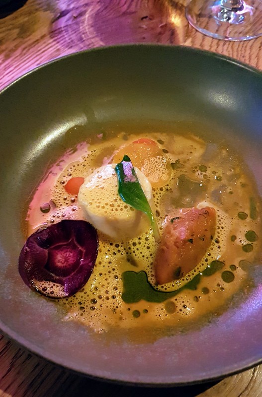 Gestoomde zeetong I zure sjalot I citrus I curry van pompoen.